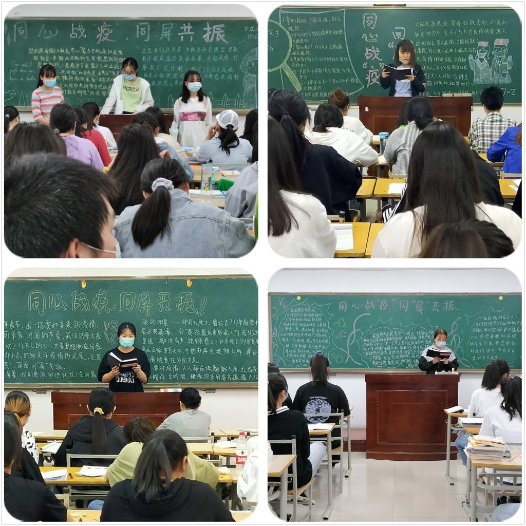各班团支书采用板报、PPT、讲授、讨论等形式,与同学们回顾了今年年初新冠疫情暴发的过程及在此期间涌现的最美逆行者的感人事迹;分享了“停课不停学”期间线上教学的学习感受;讨论了大学生在抗击疫情中的责任和担当。团支书要求同学们以疫情期间涌现出的优秀医护工作者为榜样,在校期间努力学习护理相关知识,精强护理实践操作技能,传承发扬护士职业道德,为完成护生到护士的破茧成蝶做好准备。护理高职1909班在此次团课中板报丰富,组织有序,学生参与度高,获得团总支一致好评。