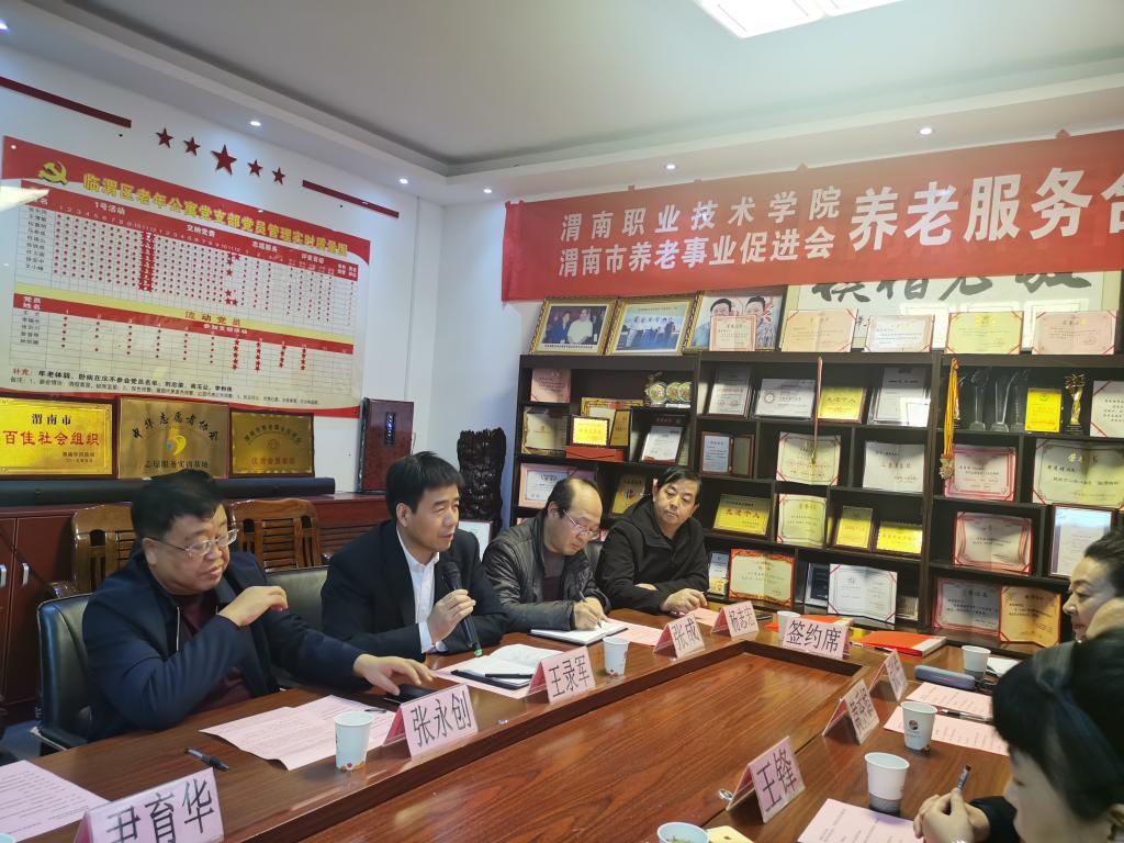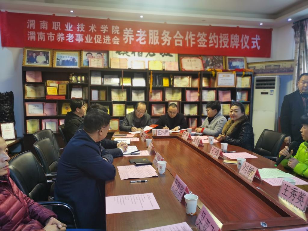为推动渭南养老服务与管理事业发展,提升我院学生的养老服务能力与素养,12月13日下午,星空与渭南市养老事业促进会在临渭区老年公寓签订了合作协议,并举行了老年服务与管理专业首个校外实训基地挂牌仪式。渭南市民政局副局长张永创、社会福利科科长杨志宏,渭南市养老事业促进会会长王锋、临渭区老年公寓院长黄秀娟,星空副校长王录军、对外交流合作处处长尹育华、星空XK体育院长张成、副院长吴亚飞,老年服务与管理专业带头人任秋爱等出席会议。