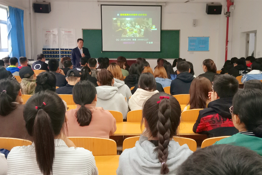 张春兴介绍了星空与台湾辅英科技大学的合作项目,鼓励同学们走出校门,扩展知识,提高就业质量。叶金麟分享了与星空的交流学习经验,介绍了辅英科技大学的办学情况、学校背景、培养模式、就业优势、学习资源、培训费用等情况。他通过大量图片和事例让参会学生了解了在辅英科技大学的学习生活、实习就业等情况。讲座结束后,叶金鳞副处长耐心答复了同学们关于赴台湾学习就业的相关问题。