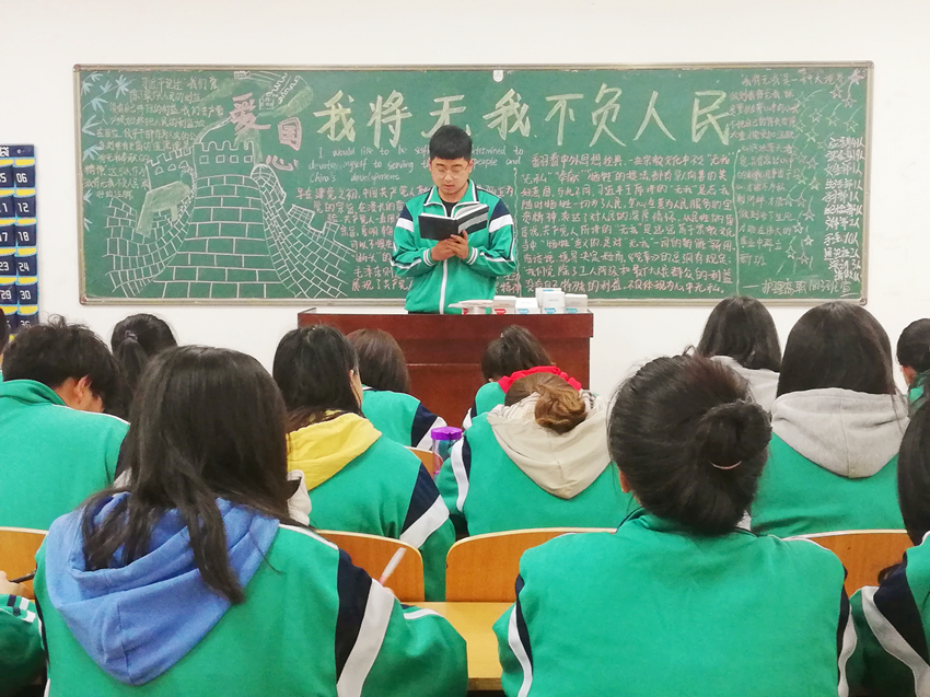 “这么大一个国家,责任非常重、工作非常艰巨。我将无我,不负人民。我愿意做到一个“无我”的状态,为中国的发展奉献自己。”各班团支书向同学们讲述了习近平总书记在罗马会见意大利众议长菲科时的对答,组织同学们交流了对“我将无我,不负人民”认识体会。学生刘萌说:“这句话是习近平总书记将庄子齐物思想与共产党员奉献精神的结合升华,充分体现了一个大国领袖高尚的境界和超凡脱俗的伟人担当。作为一名大学生,我们要积极践行社会主义核心价值观,弘扬爱国奉献精神,将自己的青春与热血奉献祖国医护事业。”学生李田分享道:“习近平总书记这句话是共产党员宗旨的具象化,表现了总书记对人民的深厚情怀,作为一名建档立卡学生,一名国家精准扶贫政策的受益者,我要铭记祖国、社会、学校对我的帮助,更加刻苦学习,用实际行动回报祖国医护事业。”学生陈梦阳说:“习主席的回答彰显了一种博大胸怀。‘苟利国家生死以,岂因祸福避趋之。’习主席为中国人民谋幸福、为中华民族谋复兴,甘于奉献、勇于担当。我们要紧跟习主席的脚步,担当起该担当的责任。在学习中刻苦努力,在工作中忘我无我,无私奉献,不负祖国期望。”