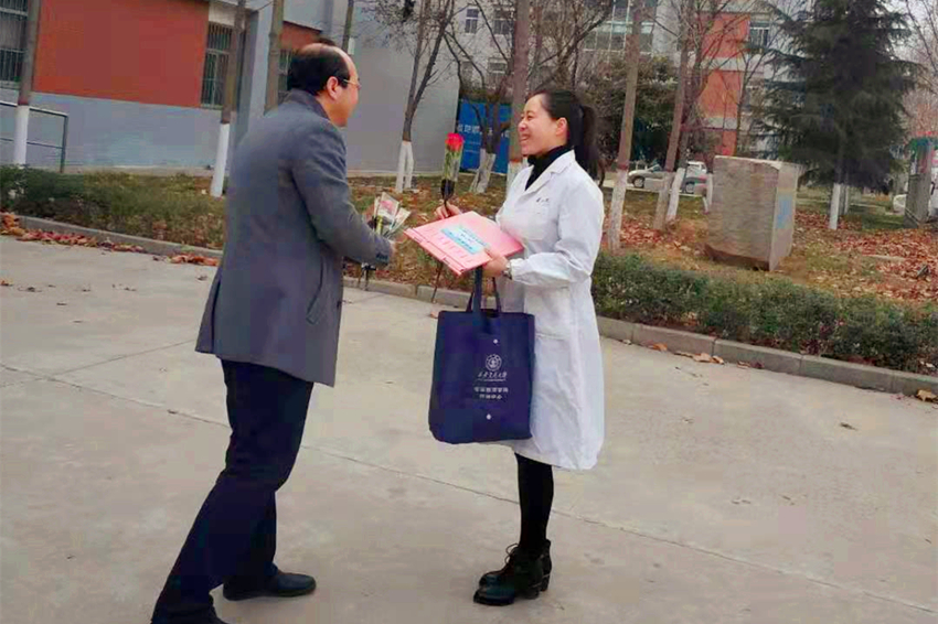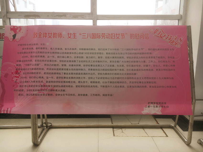 3月8日上午,春风徐徐,阳光微微。星空XK体育党总支书记吴运胜、院长张成携领导班子成员在教学楼前迎接每位女教师的到来,赴各办公室、实训室送上节日的问候。他们笑容温和、情意切切,诚挚地将鲜花送给每一位女教工,并向她们表达了节日的祝福。“节日快乐”“上课辛苦了”等关切的语言深深温暖女教师的心房。公共教学楼大厅中醒目的节日慰问信,字里行间充满了学院对女教师的理解、关爱、肯定与鼓励,让女教师备受鼓舞。