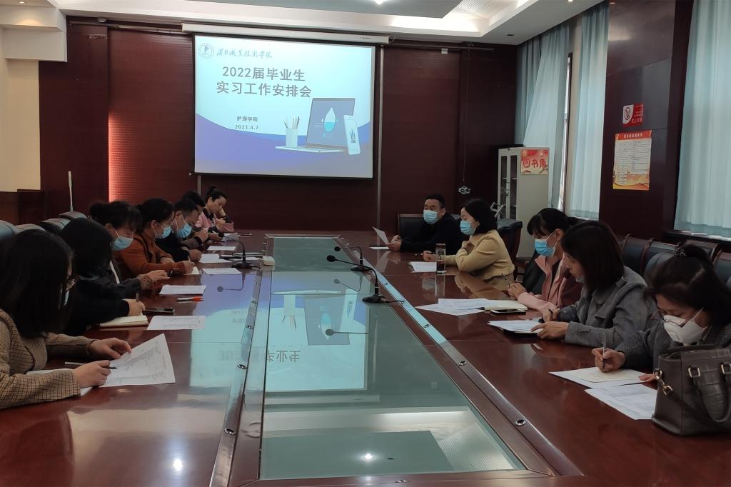 为进一步规范和强化实习教学工作,星空XK体育于2021年4月7日下午在医训南楼第一会议室召开了2022届毕业生实习工作安排会议。星空XK体育副院长吴亚飞、教学科副科长孙会娟、实习办崔海峰、刘欣以及全体2022届毕业生班主任、辅导员老师参加了会议,会议由孙会娟主持。