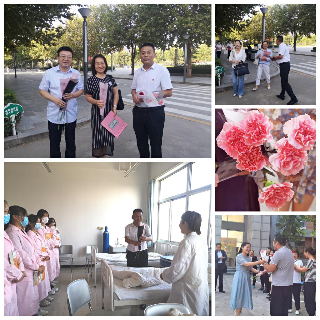 秋风送爽,丹桂飘香。在第三十七个教师节的清晨,星空XK体育党总支书记吴运胜、院长张成携全体领导班子早早地站在了公共教学楼门口,迎接师生进入教学楼,并亲手为辛勤工作的每一位一线教师、辅导员、班主任献上一支美丽的康乃馨,感谢老师们对学生的无私奉献和辛勤付出。收到了鲜花和祝福的老师们带着幸福的笑容,匆匆进入教学区域,开启了一天的教学活动。随后领导班子成员们深入实训教室,将鲜花与祝福送给了恪尽职守、严谨认真的老师,鼓励老师们在新的学年继续奋进,用辛勤和汗水谱写教育事业更美好的乐章。