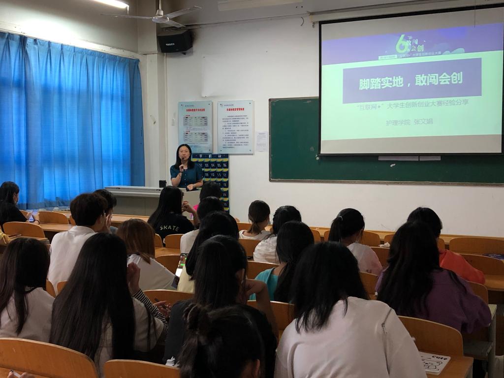 张文娟以“脚踏实地 敢闯会创”为题,全面解读了“互联网+”大学生创新创业大赛的比赛流程及相关文件要求。她以参赛项目“猕猴桃溃疡病专用生物农药”为例,交流了参加第六届“互联网+”大赛省赛的心得体会,详细指导了策划书和ppt等注意事项,分享了面对评审时的答辩技巧,为同学们参加“互联网+”大赛提供了帮助。