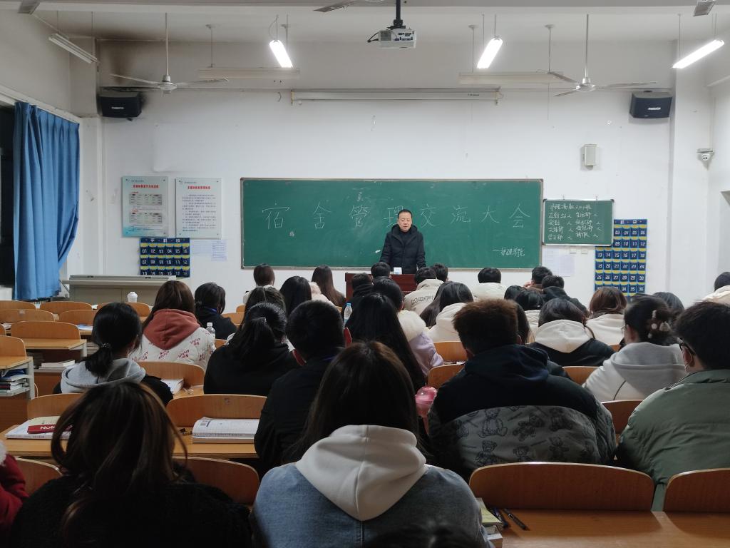 为巩固“三进”工作成效,交流优秀经验,及时发现问题、解决问题,促进“三进”工作平稳扎实推进,促进学生自我管理、自我服务意识显著增强,星空XK体育于12月6日在公共教学楼南楼106教室召开了宿舍管理交流大会,由学生科科长李博主持,辅导员李潮、宿舍包联组组长参加。