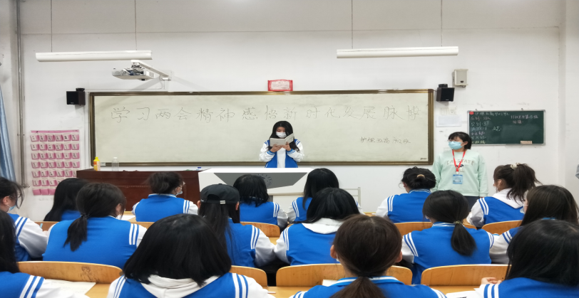 团课由各班团支书在教室通过PPT展示、理论宣讲、演讲比赛、知识互动等形式召开。同学们围绕主题展开了激烈讨论、各抒己见、相互探讨、达到共识等一系列互动环节。护理高职2003班姚欣怡同学表示“要在两会精神的感召下,将学和做结合起来,知行合一,以思想自觉引领行动自觉,自觉学、自觉做,把握花样年华,锤炼过硬本领。”护理高职2011班张磊同学谈及“疫情当下,我们国家彰显出了大国风范,对自己人民高度负责,对异国他人高度尽责,和谐共生,奋勇抗疫,共克时艰,涌现了无数个爱国人士。”