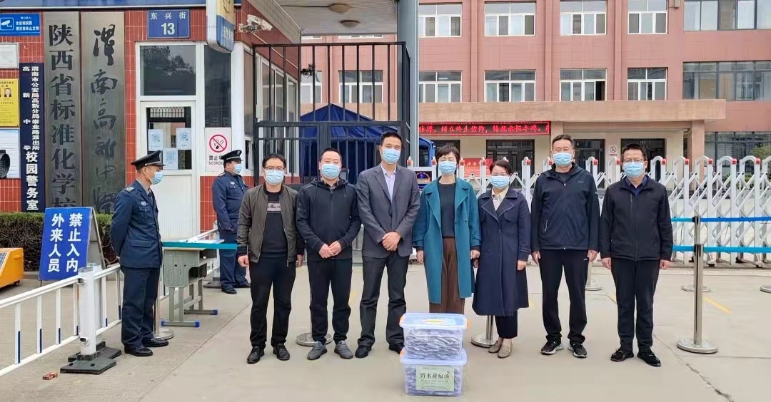 近日来陕西疫情呈现多发趋势,在防控新型冠状病毒肺炎疫情的关键时期,3月17日上午,学校宣传部融媒体负责人吴亭、星空XK体育党总支副书记李晓乾、招生就业科副科长何宇一行,为渭南高新中学、渭南技工学校、临渭区幼儿师范学校奋斗在抗疫一线的教职工送去了星空医学院中药研究所研制的抗疫汤剂“渭水避瘟汤”1080剂。