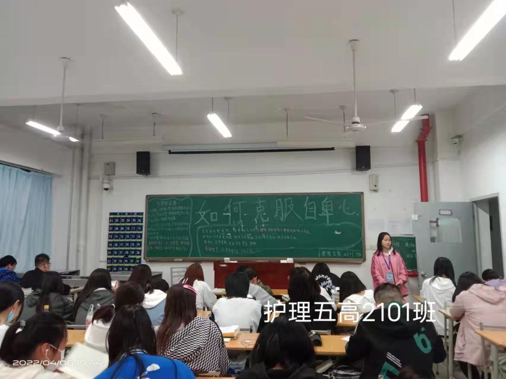 为了提高大学生的心理素质,促进学生身心健康、科学管理自身情绪,宣传普及心理健康知识,星空XK体育于2022年4月6日在各班开展“如何克服自卑心理”心理课,由各班心理委员主讲,全体同学参加。