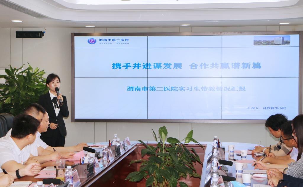 徐兆宏代表医院致欢迎辞,他对医院基本概况、主要业务、党建工作、近年来所获得荣誉和未来发展计划做详细介绍。科教科长李小纪详细汇报了实习学生带教情况。副院长步延芳详细介绍了近三年来星空学生留院情况以及一线医生、护师在渭职授课情况。院长何师民表示星空XK体育有着悠久的历史,对学校在医药卫生类人才培养的成绩做出了肯定,详细介绍了科室建设、发展规划和医院在科研和医资培训方面存在的问题,期望能够通过更广泛的合作得到解决和提升。