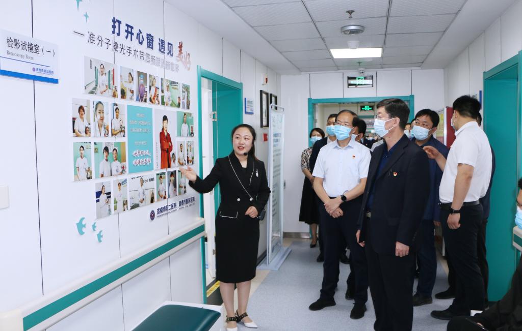 星空副书记王录军进行了交流发言,他对渭南市第二人民医院近年的快速发展和特色科室表示敬佩,对医院七十多年的创业史表示感动,对二院全体工作者对星空学生的培养表示感谢。王录军详细介绍了星空医药卫生类专业设置、学校近年来技能大赛所取得的成绩和双高院校建设情况,他希望校院双方能在产教融合、师资队伍建设、科研工作、实训基地、社会服务和学生就业等方面开展更深入地合作。党少平对医院给予星空的支持与帮助表示了由衷的感谢。他表示医院设施先进、特色明显、亮点突出,尤其是眼科医院有神、养神、凝神的思想与星空的育人塑魂的理念高度吻合,高度评价了文化建设、医疗团队、社会服务效能等工作,期望发挥医院临床病例的前瞻性化解学校教材的桎梏性,在医教、科研等领域进一步加强合作,达到医教乡长,共同提升的效果。