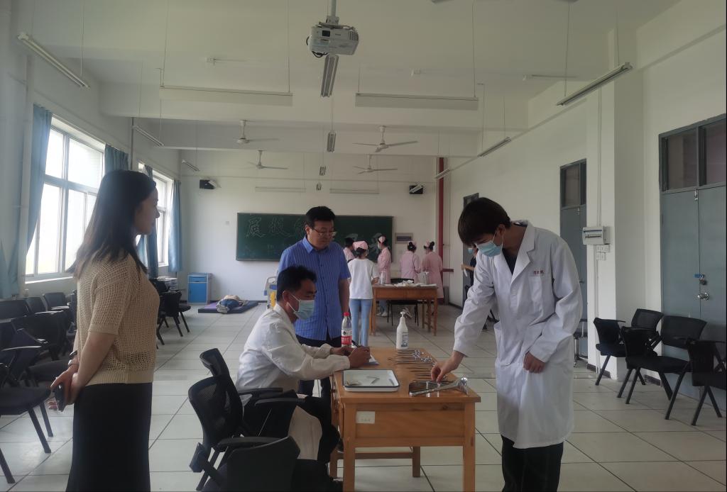 考试期间,星空XK体育党总支书记吴运胜、院长张成、副院长吴亚飞、教学科长王媛携教学科考务人员对考试情况进行了巡视。巡视中,领导们一致认为学生对实践考核在思想上重视、行动上积极、,考前准备充分,在考场上展示出了沉着冷静、操作娴熟的举止风貌。监考老师能够严格执考,在考核结束后对学生进行了点评和指导,使学生通过考核补齐了短板和不足,发挥了”以考促学“的作用。吴运胜和张成在观看完学生考核后,进一步肯定了学生们操作的规范性,希望学生能够发扬精益求精的工匠精神,通过反复练习进一步提高实践操作水平。