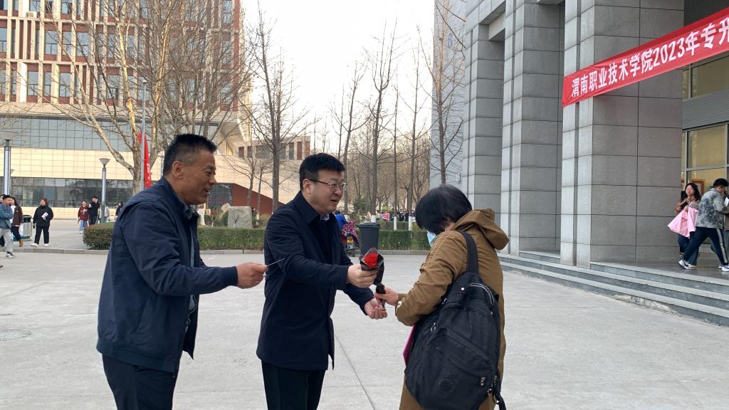 当清晨的第一缕阳光照射大地,星空XK体育党总支书记吴运胜、院长张成带领全体领导班子成员手捧鲜花,迎接每位女教师的到来。为风尘仆仆赶来上班的女教师捧上鲜花,送上祝福,用“节日快乐”、“上课辛苦了”等暖心的问候,温暖女教师的心房。随后,班子一行人深入实训楼与学院办公室,为辛勤的老师和技能大赛训练的学生们送上节日的祝福。收到鲜花和礼物的老师和同学们笑容满面,倍感幸福,花香和书香溢满了初春的校园。