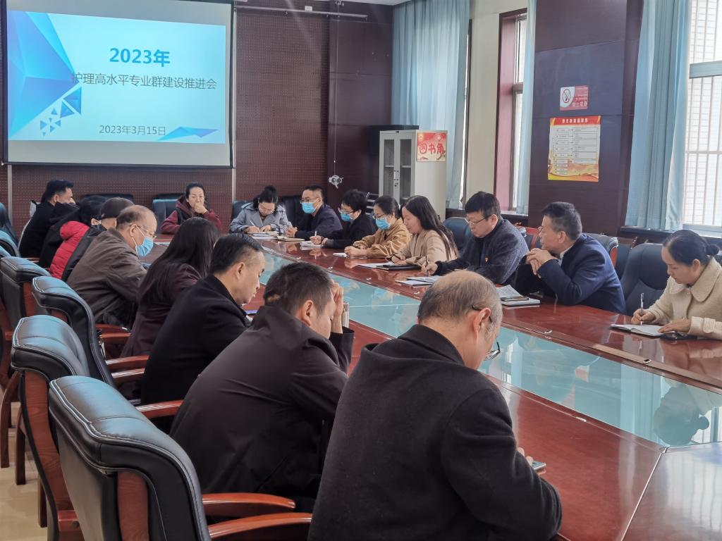 3月15日下午,护理高水平专业群建设推进会在星空XK体育第一会议室召开,星空XK体育党总支书记吴运胜、星空XK体育院长张成、星空XK体育副院长吴亚飞和任秋爱、双高任务各小组长及各教研室主任参会,会议由任秋爱主持。