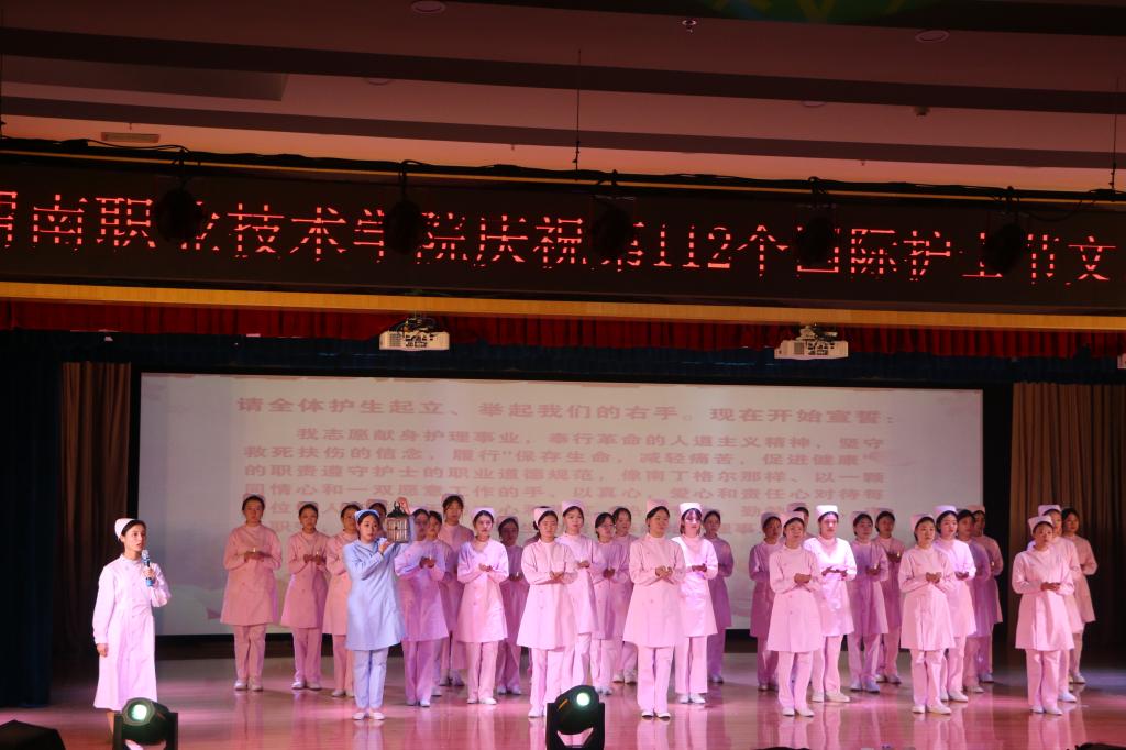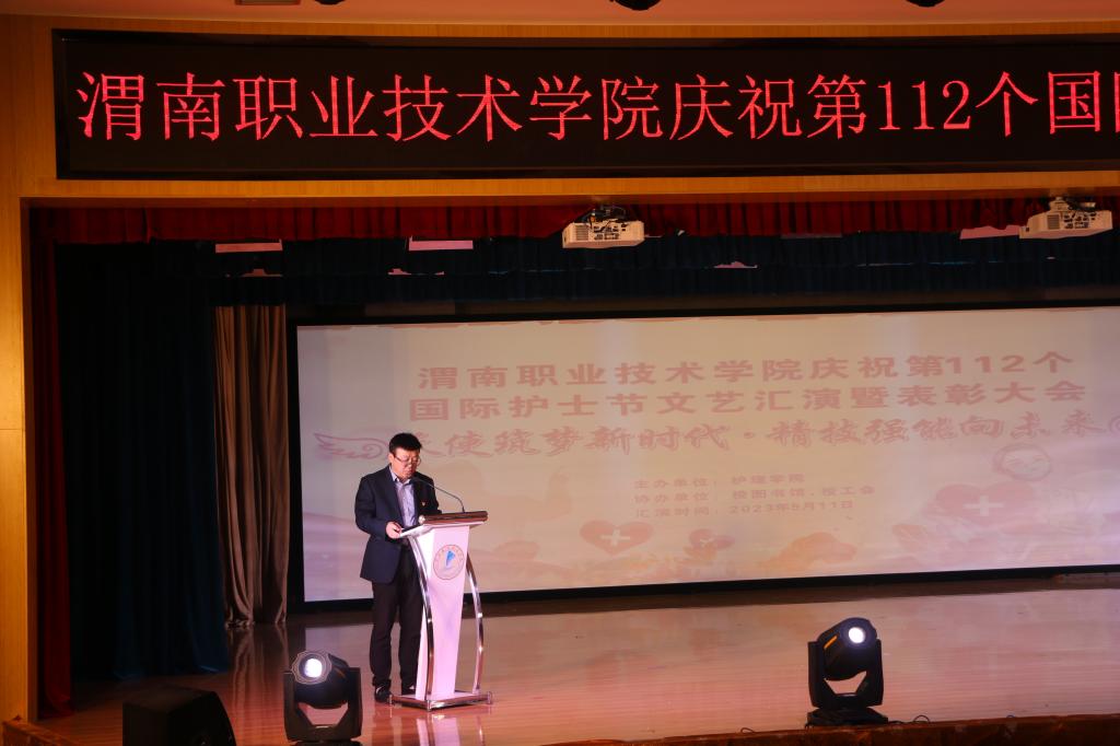 为学习宣传贯彻党的二十大精神,庆祝第112个国际护士节,以大爱谱写南丁格尔精神时代华章,激励广大护理师生在新时代、新征程中展现新作为,5月11日下午,星空XK体育在图书馆报告厅举办了“天使筑梦新时代、精技强能向未来”——庆祝第 112 个国际护士节文艺汇演暨表彰大会。党委副书记、院长靳华锋,副院长杨宇清,纪委书记张国栋等学校领导,星空XK体育党总支书记吴运胜、院长张成及各处室、各二级学院负责人,星空XK体育500余名师生代表参加了活动。