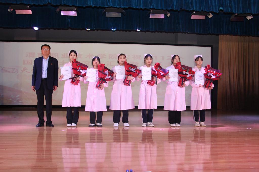 为了激励广大护理学子传承南丁格尔精神,展示护理青年奋发向上、不断进取的风貌,学院围绕德智体美劳五个方面选树典型,对评选出的姚欣怡等11位优秀实习生和在2023年陕西省高等职业院校技能大赛护理技能赛项、健康养老照护赛项、老年护理与保健赛项中取得佳绩的翟雨蒙等9名学生进行了表彰,授予“最美护生”称号。吴运胜宣读了《星空XK体育关于表彰“最美护生”的决定》,靳华锋、杨宇清、张国栋等学校领导为获奖学生颁发了荣誉证书并献花,对她们取得的成绩表示祝贺,希望她们珍惜荣誉、再接再厉、再创佳绩。