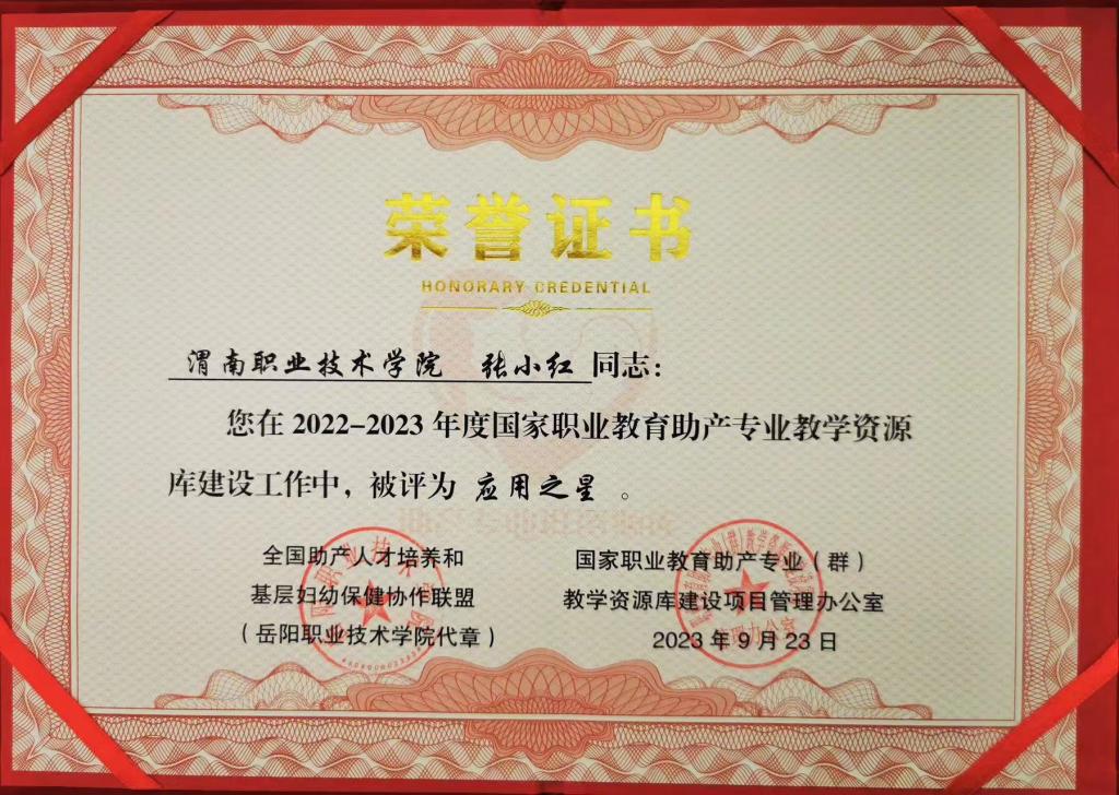 大会还对2022-2023年度国家职业教育助产专业教学资源库建设先进集体和个人进行了表彰,星空被评为“明星学校”,星空XK体育张小红老师被评为“应用之星”。