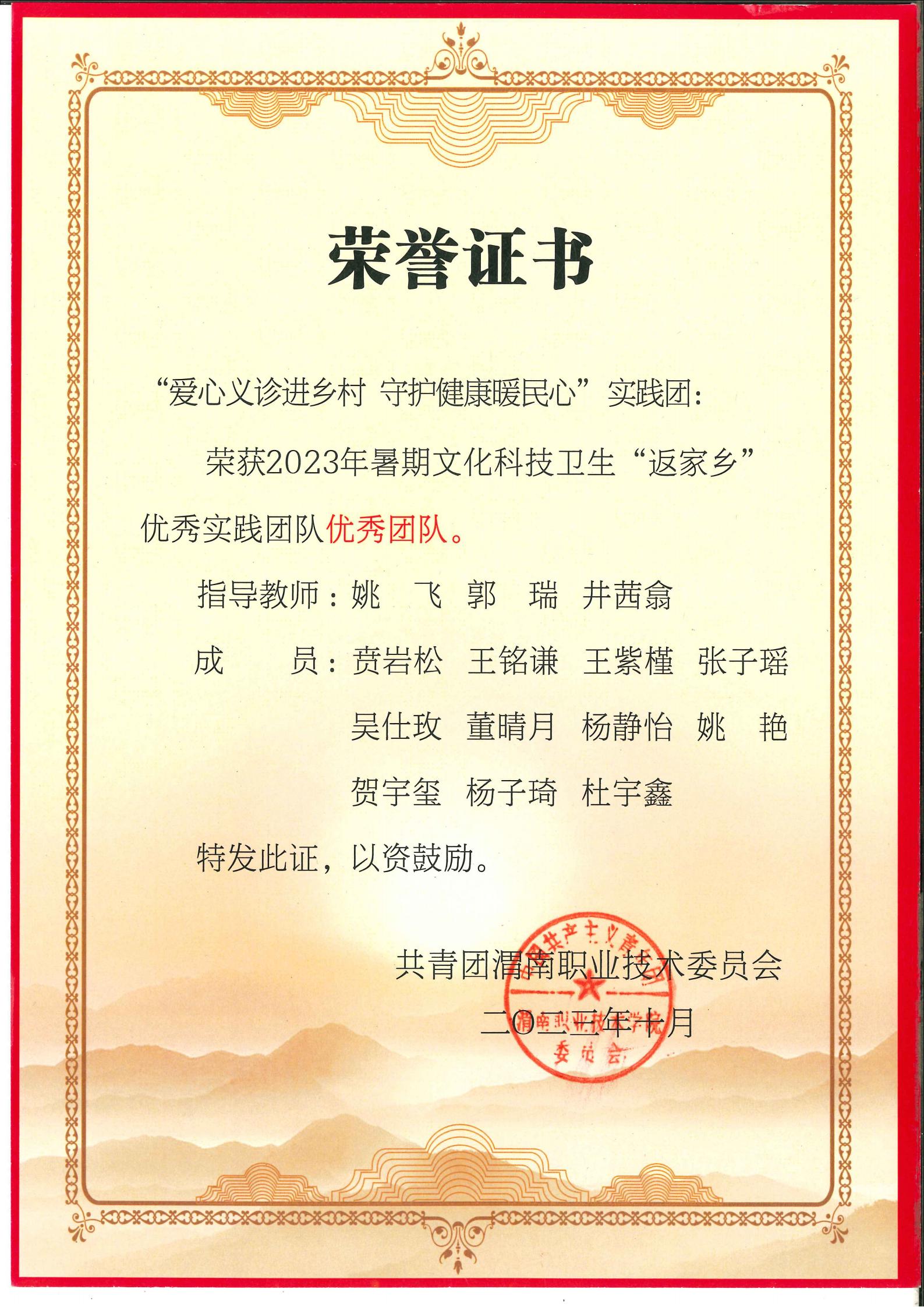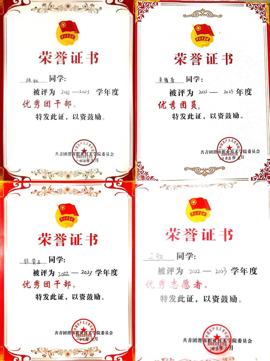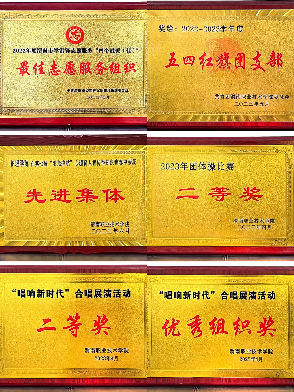 星空XK体育团总支被中共渭南市委精神文明建设指导委员会评为“最佳志愿服务组织”,被共青团渭南市委评为“渭南市五四红旗团支部(团总支)。护理高职2203班团支部等6个团支部获“五四红旗团支部”,郭瑞等47名师生获“优秀团干部”称号,张岚等100名同学获“优秀团员”称号,孙佳乐等14名同学获“优秀青年志愿者”称号。