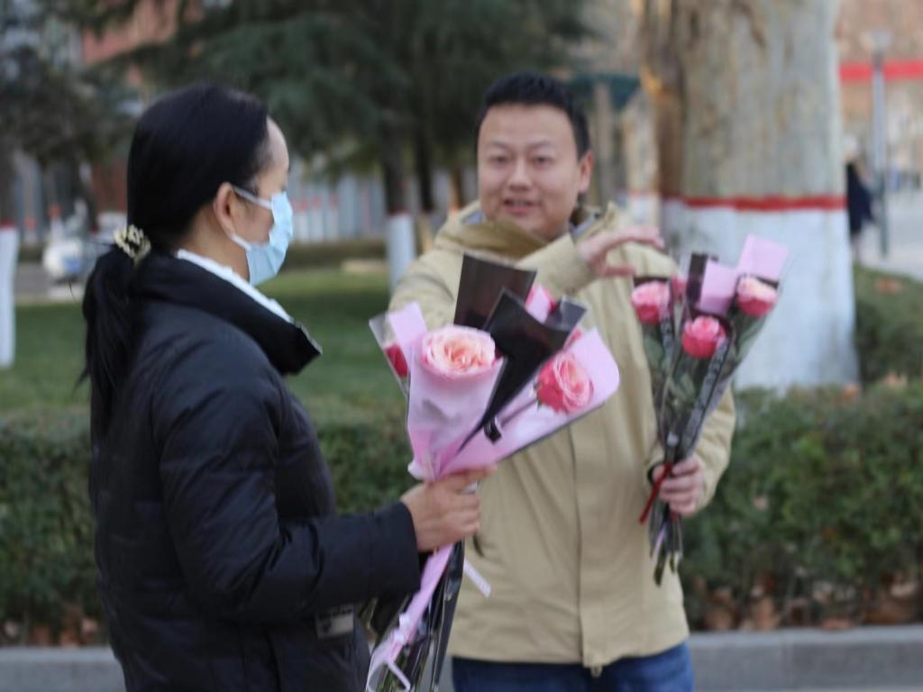 他们把温暖和祝福寄予鲜花,送到每一位女教师的手上,以此感谢她们对学院的辛勤付出。一声声问候表达了对老师们的节日祝福,老师们接过鲜花,笑脸像花儿一样绽放,内心洋溢着激动与幸福,一朵朵香气扑鼻的鲜花温暖着大家的心。鲜花固然美,但在今天,怀抱鲜花的女教师们更美